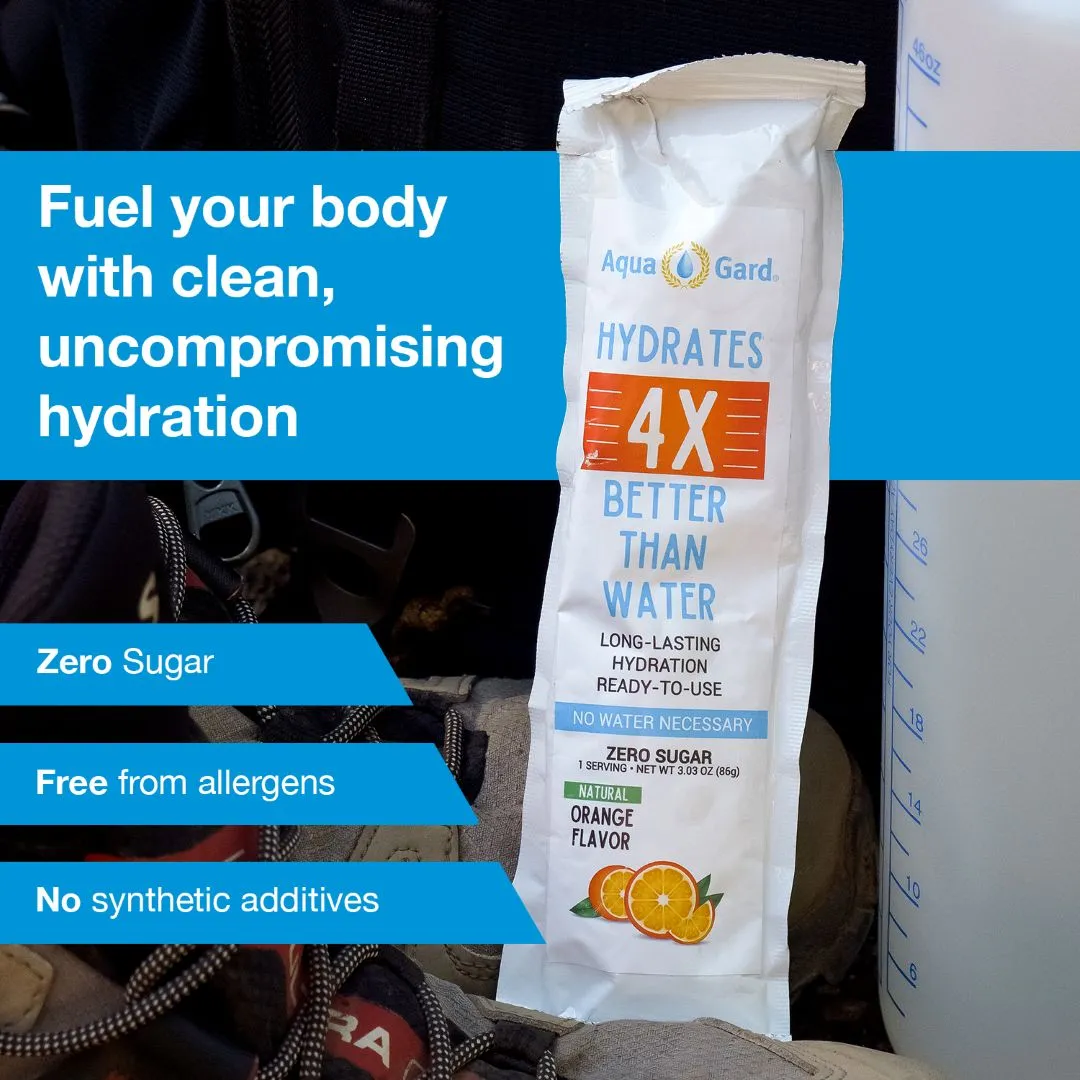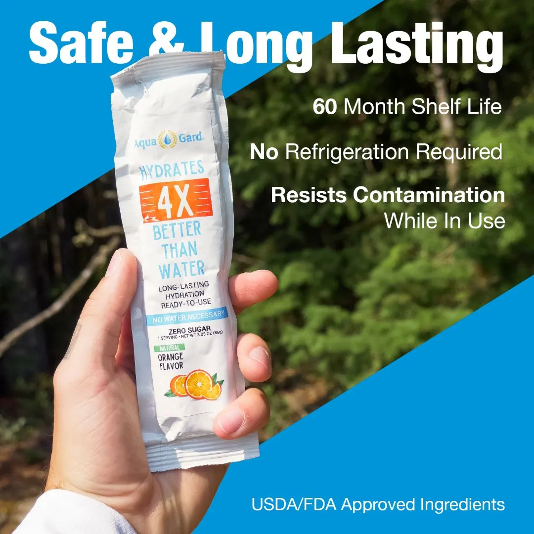 Unlike water, Aqua-Gard is ready to use and requires no additional liquid for consumption, making it a perfect emergency solution. It’s shelf-stable, with a remarkable shelf life of 60 months, and requires no refrigeration, offering a reliable hydration option in even the most challenging conditions. The product’s unique formula is absorbed differently than water, providing sustained hydration over a longer period, ensuring that cells stay hydrated far more effectively.