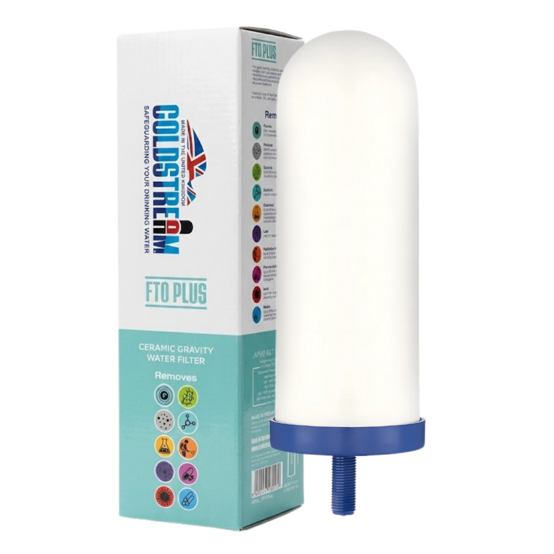 The Coldstream FTO Plus Ceramic Gravity Water Filter uses advanced filtration technology to remove 99.9% of harmful microorganisms. It also reduces the presence of other common contaminants like lead, fluoride, and microplastics.