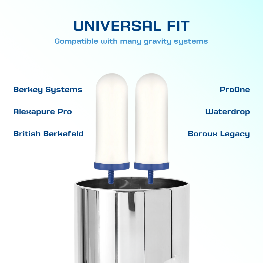 The FTO Plus is simple to install and user-friendly. Once installed, it begins working immediately and requires no monitoring or setting adjustment. Use this powerful filter with several types of gravity water filter systems, including Berkey, Boroux, British Berkefeld Gravity Systems, as well as Coldstream’s Countertop Water Filter System.