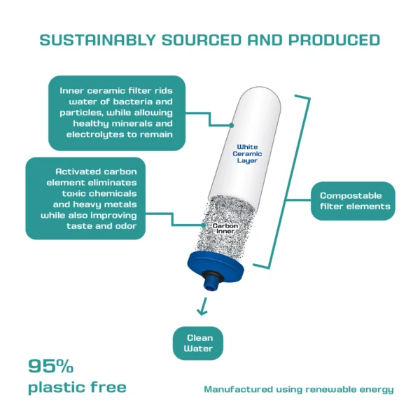 The Coldstream FTO Plus Ceramic Gravity Water Filter is made up of two key components that ensure unparalleled filtration performance. First, there is the specially formulated ceramic outer layer, a unique feature that provides maximum protection against harmful bacteria, while simultaneously eliminating all particles and microplastics that may lurk in your water. This advanced layer acts as a fortress, shielding you and your loved ones from potential waterborne threats.