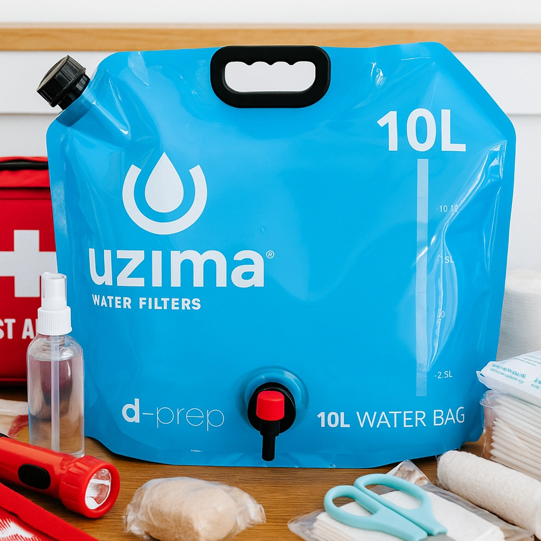 Don’t mistake its light weight for weakness. The D-Prep is built with reinforced seams and from puncture-resistant, BPA-free plastic. It’s tough enough for the harshest environments and safe for long-term water storage. Plus, it’s reusable and upgrade-ready, compatible with Uzima filtration systems for when you need to purify your source.
